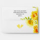This summer or fall wedding envelope showcases a delightful blend of nature-inspired elements. The exterior of the envelope is adorned with vibrant yellow watercolor flowers and two hearts. As you open the envelope, you’ll be greeted by the same captivating watercolor flowers on the inside, creating a harmonious and visually appealing experience.