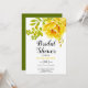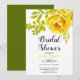 Yellow watercolor cactus flowers and succulent spring and summer floral wedding bridal shower invitation. It displays yellow cactus flowers and green succulent leaves. The back is of solid green colour.