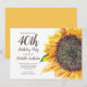 Yellow Watercolor Sunflower 40th Birthday Women Invitation