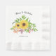 Yellow watercolor sunflowers rustic floral wedding napkin