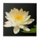 This ceramic tile features my photograph of a softly glowing yellow and ivory waterlily on a black background.
