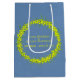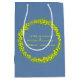 Give your wedding gifts in this special wedding gift bag personalised with your bride and grooms name. Perfect to add a personalised touch to your wedding gifts to your wedding party or when giving wine. Yellow wattle acacia art gift bag in yellow and blue. Matches a range of other wedding products in the yellow wattle flower art range. Customise / personalise these gift bags with your own bride and grooms names and wedding date on both sides. Original art and design by Sarah Trett.