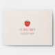 Created to coordinate with the "Wavy Apple" preschool graduation announcement collection, this charming envelope features a sweet, halftone apple illustration with a "Deliver to" message overlay. There is space beneath the illustration for the card recipient's name and address. The back flap has space for the customer's name and address, while the inside of the envelope features a coordinating yellow wavy pattern.