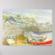 The tide is ebbing, and a local fishing boat rests on the sand in the outer harbour at Mevagissey. The skipper has taken his boots off and left them by his boat. From original watercolour by Christine Hudson. (Sailing boats, old and new, and Cornish harbours feature in my apocalyptic novel, A Time To Run (Colin Hudson), now available in Kindle and eBook format).