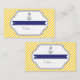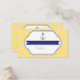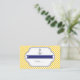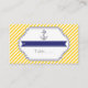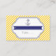 Yellow, white stripes and anchor nautical wedding seating place card. A stylish striped pattern design with yellow, white diagonal stripes, a grey anchor with a blue heart and rope and your text in a frame with a navy blue banner. Contemporary yet with a vintage look in a sense. You can change background and text colour choosing from over 200 colours from Zazzle colour chart. This classy design is a completely customisable template and is part of a wedding set perfect for a summer wedding.