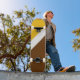 Bold Yellow Thin White And Bold Brown Colour Block Style Modern Background Design