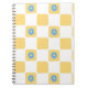 Yellow White Chequered With Blue Flower Pattern Notebook