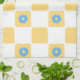 Yellow White Chequered With Blue Flower Pattern