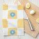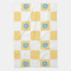 Yellow White Chequered With Blue Flower Pattern Tea Towel