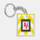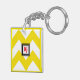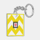 Yellow & White Chevron Custom Red Monogram Key Ring