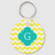 Yellow White Chevron Teal Quatrefoil Monogram Key Ring