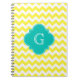 Yellow White Chevron Teal Quatrefoil Monogram Spiral Notebook