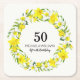 Pretty yellow and white floral wreath paper coasters for a 50th birthday party. Yellow and white daffodil flowers with foliage create a beautiful spring bouquet against a delicate, off-white background. 50 is written in large text, and the birthday celebrant's name appears below and then the text Fiftieth Birthday. All of the sample text can be customised. It's possible to change the wording, colour and font. If you need a different year that is a simple option.