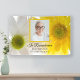 Remember the life of your loved one after their death with the cheerful Yellow and White Daisy Flowers Celebration of Life Funeral Service Banner. This pretty custom tribute memorial hanging vinyl sign features a close up digitally painted floral photograph of white and yellow daisies with a white background and the words In Remembrance. Feel free to change the text and personalise it with a picture, name of the deceased and dates.