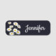Embrace the beauty of nature with this personalised name tag. Let the yellow and white daisies on a black background captivate your style and add a touch of elegance to your everyday look.