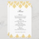 You can customise the text on this yellow, grey, and white damask arabesque floral wedding or special occasion menu card. To change the text, use the personalise option. For more extensive changes to the menu, including changes to the font, font sizes, font colour, or text placement, use the customise it option. A beautiful and elegant choice for a wedding in any season or any other special occasion such as a retirement, anniversary, or birthday party. Yellow, grey, and white is a stylish, traditional choice.
