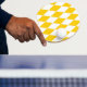 • For one-sided printing, the undecorated side features a 2-ply, ‘pips in’ rubber face.