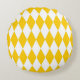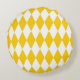Yellow White Harlequin Diamonds Checkers Design Round Cushion