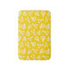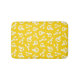 Bright yellow bath mat featuring white lobsters. Perfect for the beach themed bathroom, and modern coastal home.