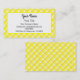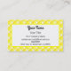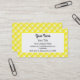 Business cards with retro script and block slab letters on a yellow and white country plaid checked kitchen pattern, with stripes of orange and green.