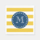Yellow White Stripes Pattern, Navy Blue Monogram Napkin
