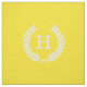 Custom Fabric: Solid Yellow Background with White Wheat Laurel Wreath and Initial Monogram
