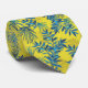 Yellow neck tie with vibrant blue and green tropical leaf patterns on both sides, creating a fresh and lively tropical vibe.