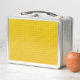 This is a standard metal lunchbox that appears to work just fine. We designed this box ourselves with an uploaded photo and custom text on the front and back. It looks absolutely beautiful except the front of the lunchbox is not centered like it shows in the photo. The print borders don't align with the inset flat part of the box where the preview photo online showed it perfectly centered in there. The back looks nice and centered though.