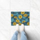 Yellow Zinnias on dark blue Doormat