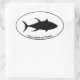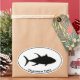 A yellowfin tuna icon is featured on this Euro style oval sticker logo. Yellowfin tuna are often associated with deep sea fishing, commercial fishing, and coastal communities around the world.