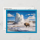 Postcard is shown with a beautiful photo print of a bison near a geyser in Yellowstone National Park.