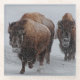 Bison in wintery Yellowstone road.
