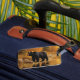This luggage tag is shown with a photo art print of a wild Black Bear in Yellowstone National Park.