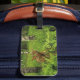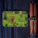 This luggage tag is shown with a photo print of cute baby deer fawns wild in Yellowstone National Park.