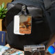This luggage tag is shown with a photo print of a cute squirrel wild in Yellowstone National Park.