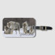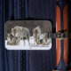 This luggage tag is shown with a photo print of wild wolves in Yellowstone National Park.