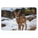 Magnet is shown with a photo print of a wild deer fawn the beautiful snowy forests.