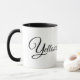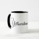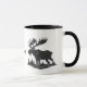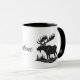 This ceramic coffee mug is shown with an art print of a moose with Yellowstone text.