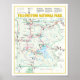 Modern map of Yellowstone National Park showing roads, rivers, mountain ranges, towns, and special park features.