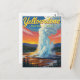 A magnificent, vintage-style travel poster capturing the eruption of the world-famous Old Faithful geyser in Yellowstone National Park. The scene is set against a vibrant, fiery sunset, highlighting the natural drama of the park. Perfect for nature lovers, national park enthusiasts, and collectors of retro travel and landscape art.