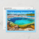 Postcard is shown with a beautiful photo print of the thermal hot pots in Yellowstone National Park.