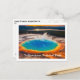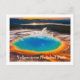 Postcard is shown with a beautiful photo print of the grand prismatic thermal hot pot in Yellowstone National Park.