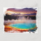 This postcard is shown with a photo print of a thermal hot spring in Yellowstone National Park.