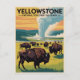 Capture the timeless spirit of America's first national park with this vintage-style postcard featuring Yellowstone. The artwork showcases a herd of bison grazing in a meadow with the iconic Old Faithful geyser erupting in the background. The retro aesthetic and "Faithful For Over 150 Years" tagline make this a perfect memento for nature lovers and a beautiful way to share a piece of this legendary park.