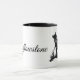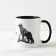 This ceramic coffee mug is shown with an art print of a wolf with Yellowstone text.