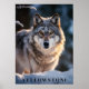 Poster is shown with a photo print of a Yellowstone wild wolf in winter season.