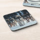 Coaster set is shown with a photo print of a wolf pack in Yellowstone Park.