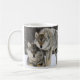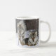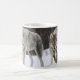 This ceramic coffee mug is shown with a photo print of wild wolves in Yellowstone National Park.