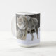 This ceramic coffee mug is shown with a photo print of wild wolves in Yellowstone National Park.