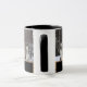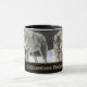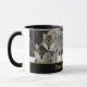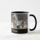 This ceramic coffee mug is shown with a photo print of wild wolves in Yellowstone National Park. Tan accents with Black interior and handle.